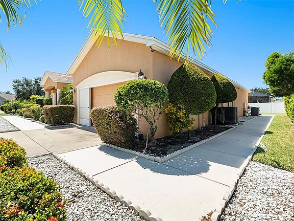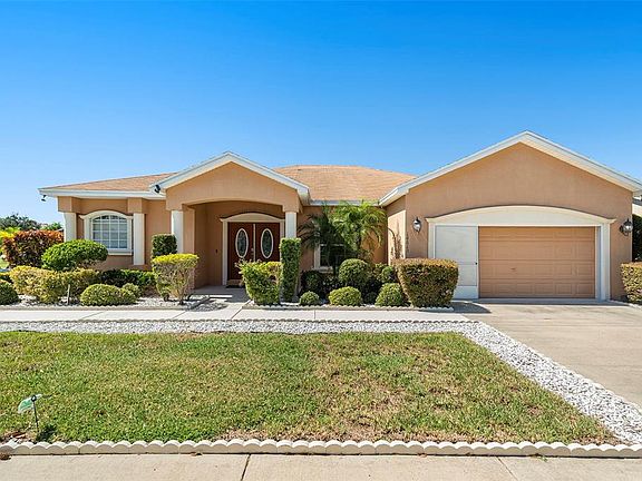 Exquisite Luxury Living Awaits! This meticulously crafted 4-bedroom, 2-bathroom home, built by renowned Highland Homes, is nestled on an oversized corner lot. Featuring a spacious 2-car garage, the property is designed to impress with its stunning pool area—perfect for creating cherished memories with family and friends, all while overlooking a beautifully manicured lawn. Ideally situated in a highly sought-after neighborhood, this home offers the perfect blend of tranquility and convenience, with easy access to hospitals, shopping, dining, and more. Enjoy an extraordinarily low HOA fee of just $100 annually, ensuring peace of mind and exceptional value. Even better, there are NO CDD fees! As you step through the grand double doors, you'll be welcomed by an elegant foyer that leads into the inviting living and dining spaces. The owner's suite, located to the left, offers direct pool access, expansive walk-in closet, and a spa-inspired en suite bathroom featuring a soaking tub, a luxurious walk-in shower, and fine finishes throughout. The thoughtful floor plan also includes three additional generously sized bedrooms, all located off the family room with new hypo-allergic carpet, along with a beautifully appointed second bathroom. Recent upgrades include a new HVAC system (2021), new pool pump (2025) hot water heater, and roof (both 2025), ensuring the home is in impeccable condition and move-in ready. This is the home you've been waiting for—where comfort, luxury, and convenience seamlessly come together.
