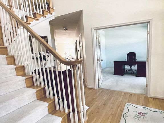 Beautifully maintained 4BR/3.5BA home with SOLAR PANELS that significantly lower your electric bills. Located in a SAFE and QUIET street, perfect for walking, biking and running. A great opportunity to own a home with ample square footage- 3,588 square feet above ground with another 1,000+ finished space in the basement with a full bathroom, perfect for multi-generation living. You come in and are greeted with a light filled two story foyer with a grand staircase. To your right of the entrance you will find an OFFICE with great natural light. To your left is a formal living and dining room. This OPEN SPACE entryway leads to a large kitchen, sunroom and family room with an additional staircase to the above bedrooms. The FAMILY ROOM has a two-story ceiling with a floor to ceiling stone fireplace (gas powered), perfect for entertaining. The KITCHEN includes a walk-in pantry, double ovens, plenty of cabinets and an island with a gas stove downdraft cooktop with a powerful exhaust system that doesn’t hang from the ceiling to keep the open feel. There is seating at the island and bar seating over the sink that opens into the sunroom for informal dining. This home backs to the woods and is perfectly situated near commuting routes and shopping. Upstairs you will find 4BR, including a primary bedroom with large ensuite bathroom and walk-in closets. HUGE basement has unlimited opportunities for even more entertaining, or building your own personal home theatre. Home has an attached two-car garage with plenty of storage space. Low HOA and community amenities include pool access and tennis courts