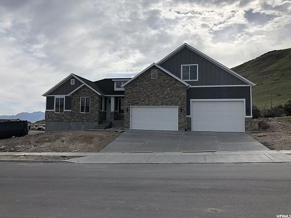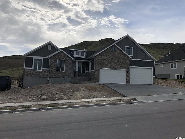 Move in ready! Lot 412 The Ridge at Herriman Plan: Teton XL. Standard features include a massive 6 car garage, 9' main level ceiling, vaulted family room, gourmet kitchen with double wall oven, gas cooktop, hood, granite counters through out with square under mount sinks, designer laminate wood flooring, 2-tone paint, fireplace and more. Buyer to verify all info