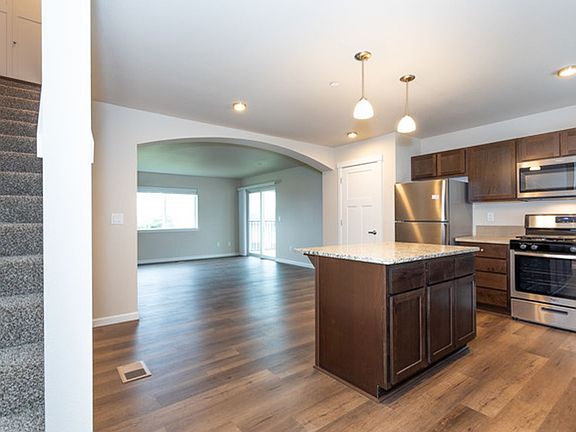 Throughout the home, you'll find luxury vinyl plank flooring in the main living areas, plush carpet in the bedrooms, and a cozy gas fireplace perfect for relaxing evenings. Step outside to your large private patio with a beautiful view.