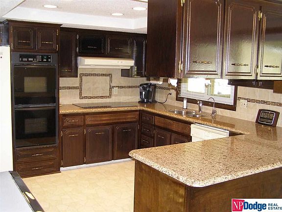David Rooker, M: (402) 490-4444, drooker@npdodge.com, www.npdodge.com - Millard W/O split on cul de sac. Remodeled KIT w/new granite counters, back splash, refinished cabinets, cove ceiling w/recess lighting, & updated floors in KIT, DR & all baths. New flat cook top range & dbl ovens. Baths include whirlpool & jet air tubs in master & main bath, new counters & elongated stools. Ext. updates include maintenance free siding, soffits, gutters & gutter guards. Vinyl windows, steel insulated gar. door, roof, retaining wall & covered deck. Remainder of Transfer Warranty