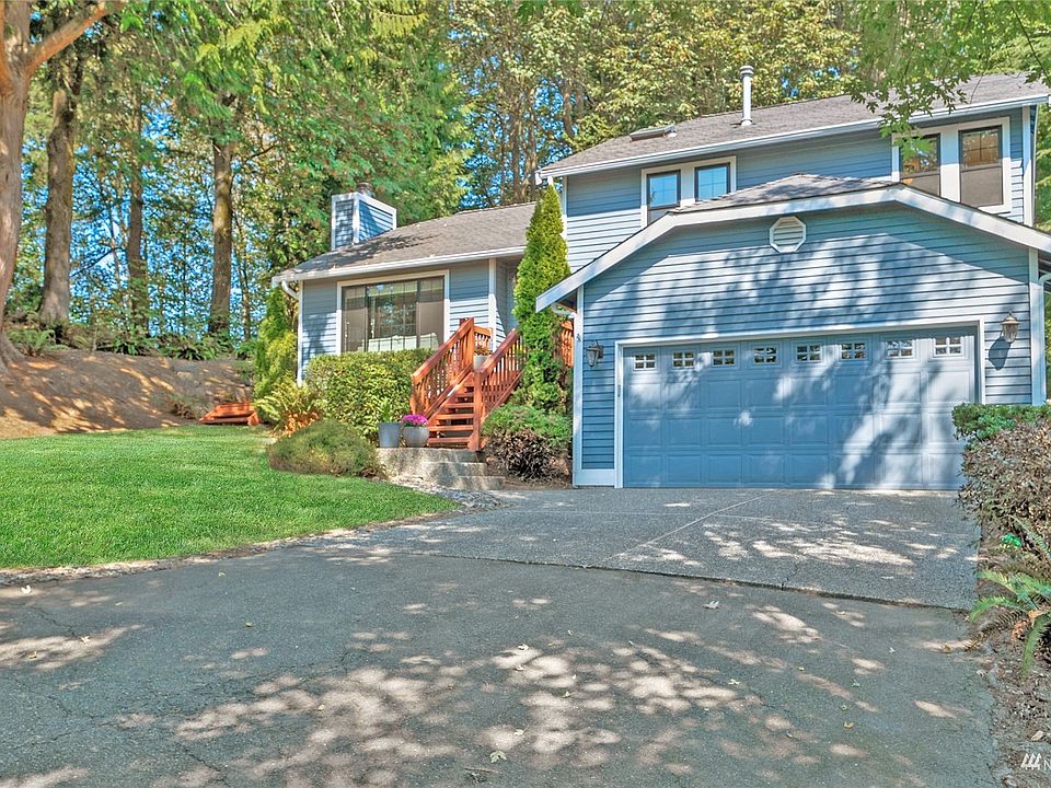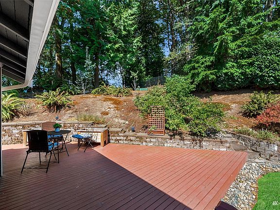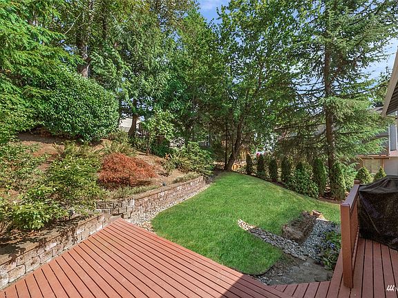 Rare privacy abounds with this totally remodeled Tri-level Model home nestled on a secluded 1/4 acre lot. Long private driveway. You will love the green belt backdrop & outstanding backyard with a giant sized wrap around deck. Bright open floor plan with high ceilings & rich hardwood floors. Chef's kitchen with granite counter tops. Primary bedroom suite with granite counter-top bath and a soaking tub. Formal living room with gas fireplace. All bedrooms have updated closets with built in shelving. High end vinyl windows updated throughout. Extended family room. Central Air Conditioning Oversized garage. Perfect location with easy access to I-405, award winning NorthShore schools, parks & walking trails. No HOA!