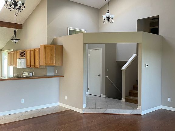 Large living room & kitchen with cathedral ceiling. The kitchen includes good appliances, garbage disposal, dishwasher & microwave. Central AC and gas furnace. Washer & dryer included. Good sized bedrooms with large closets. Lage fenced backyard facing Trentwood Elementary. Unfinished basement for more storage. Balcony in master bedroom