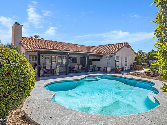 Experience elevated desert living in this stunning single-level 4-bedroom home, tucked away in a quiet cul-de-sac in one of Ahwatukee's most sought-after neighborhoods. Thoughtfully designed for comfort and style, this immaculate residence offers an open, light-filled floor plan ideal for modern living. The primary suite features its own mini-split AC for personalized comfort, with an additional unit in the garage for year-round use. Enjoy a sparkling pool, big backyard perfect for entertaining. Near South Mountain Park, top-rated Kyrene schools, shopping, dining, and freeways—this home embodies luxury Ahwatukee living at its finest. New roof in August 2021.