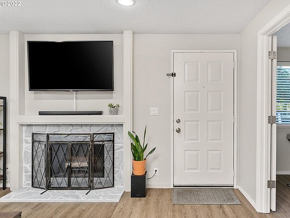 Open Sat 2/5 11-1pm. Welcome home to this fantastic one-level condo in great location near to Nike. Enter into the open concept living room with wood-burning fireplace & dining nook which overlooks the private patio. Light & airy kitchen features updated painted cabinets, quartz & dining bar. Serene primary suite features roomy walk-in closet, attached bath & laundry. Second bed w/ double doors perfect for guests or working from home. Fenced patio has storage closet and plenty of space to BBQ.