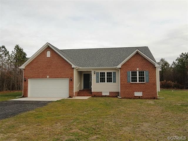 NEW CONSTRUCTION. This 3 bedroom, 2 bath home on 3.44 acres is ready for you to move in. The Kitchen opens to the Living room and the Family room which has a gas fireplace for these cold winter night. The Kitchen has an island and custom Oak cabinets with dental molding. There is also a beautiful formal Dining room with a tray ceiling. The Master suite has 2 walk-in closets and a spacious Master bath with a dual vanity and ceramic tile floor. There is a 2 car attached garage and a covered back porch with iron railings. This property is 20 minutes from Colonial Heights.