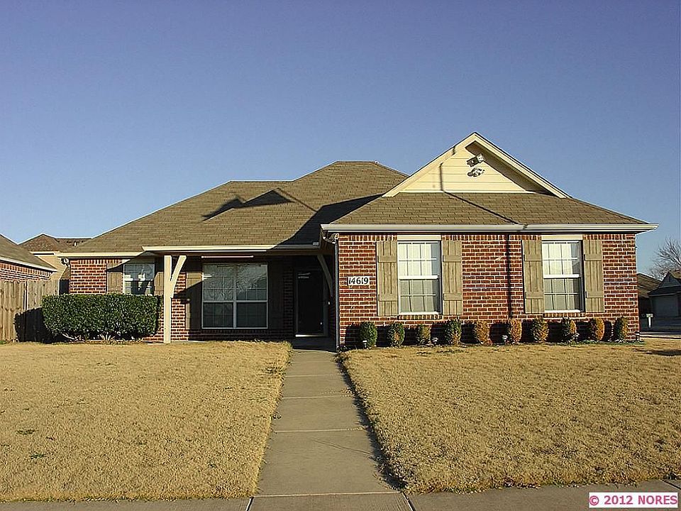 Built by Westec '1230' Plan. Full brick on corner lot, side entry 2-car garage w/EOHD. Gas logs in WB fireplace, neutral kitchen with ceramic tile backplash and floors, fridge included in sale. Tile floors also in baths. Master suite with full bath & walk-in closet. SHORT SALE.