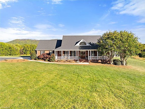 Rare opportunity to own 20 acres w/ sweeping mountain views! Sauratown Mtn, Pilot Mtn & Hanging Rock within 30 min. 1/4 mile long, paved & private drive leading to home and garage. This custom, one-owner brick estate offers just under 3,000sf with total of 5 BR including 3 BR (2 on main level), 3 full baths, office, & private staircase leading to large bonus room. Enjoy front porch sitting or gatherings off back patio. Timeless elegance with custom paintwork on main level. Traditional, cozy, floorplan with spacious gathering rooms including kitchen, living, and dining. Tons of windows & natural light. The massive 40x60 detached garage is truly exceptional-heated & cooled with epoxy flooring, RJR beams, & reclaimed tobacco barn wood from the property. Perfect for land lovers, the grounds present endless possibilities—from a private vineyard or event venue to a serene personal retreat. Ready for farm life or gardening. Parcel 6935177165 conveys with sale. Agents, see remarks.