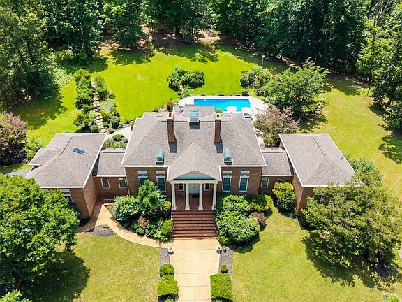 Privately sited on 21 landscaped acres, this stately brick residence blends timeless architecture with modern comfort. The home offers five bedrooms, seven full and one half baths, soaring ceilings, elegant moldings, and four fireplaces. A grand living room anchors the main level, complemented by a richly appointed home office, expansive primary suite, and guest quarters with loft. The finished walk-out lower level includes a wet bar and wine cellar—ideal for recreation and entertaining. Outdoor features include a swimming pool, clay tennis court, mature landscaping, and a sweeping lawn. A generator and garage enhance everyday functionality. An adjacent 21-acre parcel is also available. An estate offering privacy, scale, and refined living—minutes from town, yet a world apart.