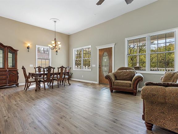 Originally built in 1900 as the Sugar Grove schoolhouse, this home has been rehabbed down to the studs with extra square footage added. Spectacular Ranch Home on a peaceful country road with plenty of outdoor Fun, 3.99 ACRES with a 30x50 barn that sits back off of a long driveway for privacy. The open-concept layout, perfect for living and entertaining includes a kitchen with soaring 12-foot ceilings and custom cabinets, Custom island for additional seating, spacious main-floor laundry room. The Mstr Bdrm w/ walk-in closet, garden tub, and Sep Shower. New Luxury vinyl plank flooring in the kitchen, dining room and family room. The walkout lower level includes a family room, bedroom, and bathroom. The seller is leaving the refrigerator.