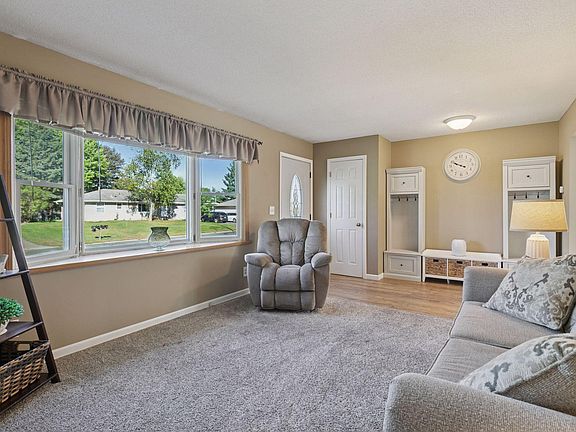 The finished lower level (2025) expands the living space with a cozy media area, a large open space for entertaining, and three storage rooms with built-in shelving. Laminate hardwood flooring, a laundry/utility area with a washer and dryer, and updates to HVAC and windows add both comfort and value.