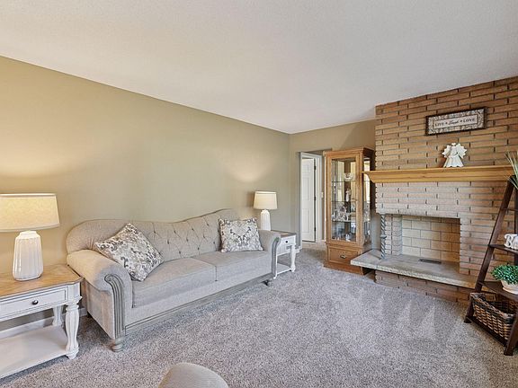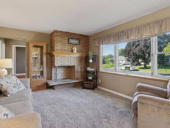 The main level offers a spacious living room highlighted by a masonry brick fireplace and a large bay window that fills the space with natural light. The kitchen boasts white cabinetry, granite countertops, stainless steel appliances—including a gas range—and a stylish tiled backsplash. A rare 12 x 7 walk-in pantry provides incredible storage and sets this home apart. The dining area, with laminate hardwood floors, flows through glass patio doors to a large backyard patio—perfect for entertaining or everyday enjoyment.