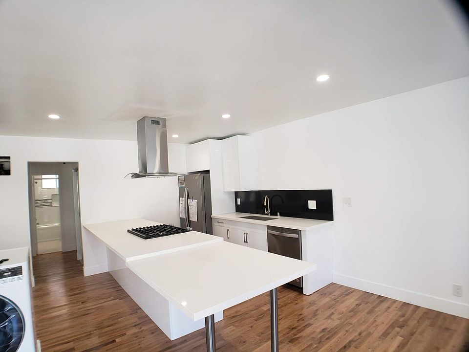 Beautiful Large Completely remodeled 1 bedroom unit! Oversized caesarstone kitchen countertops refrigerator with ice maker and water dispenser dishwasher stove full sized washer/dryer in unit wall to wall recessed lighting new hardwood floors new bathroom tiling and new kitchen and bathroom sink Building features pool laundry facility and onsite parking. Located south of Ventura Blvd. and walking distance to food banks shopping and entertainment.