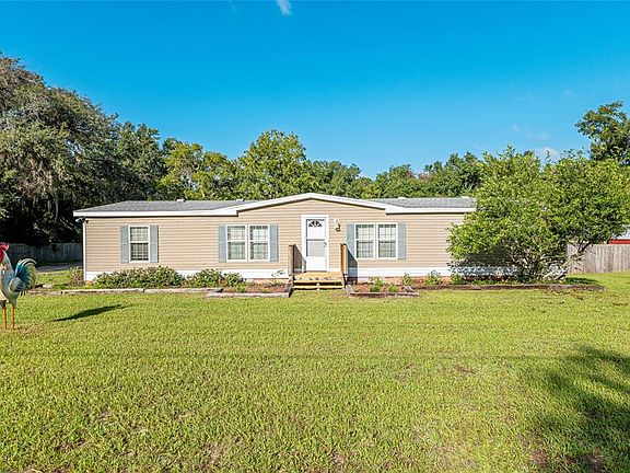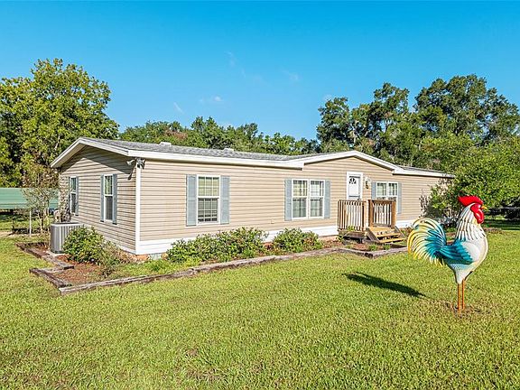 MOVE IN READY!! This 3 bedroom 2 bath Home is Sitting on Just under 1 Acre Completely Fenced. This is THE PERFECT Location for Easy Commuting to Ocala and The Villages. This Home Has New Roof 2025, HVAC 2018, Whole House Renovation 2017, Includes: New Electrical Service and Wiring Throughout, Completely Re-Plumbed, New Sub-Floors, Drywall, Bathrooms, Kitchen, Water Heater, Paint and Flooring Throughout. Newer Deck Around Large Above Ground Pool. The Fantastic 900+ sq ft Workshop/Garage has Commercial Grade Concrete Floor along with Electric, Water and Septic Hook-Ups. Also There is an RV Hook Up with Water and Electric on the Property. The Home has Nice Size Chicken Coop and Garden Area for Those Who Love The Farm Life. This Home Had Strapping and Skirting Brought Up to HUD Codes in 2021 to Qualify for FHA and VA Mortgage. This Home is Perfect For A Family Looking For a Quiet Country Setting but Close to Restaurants, Shopping, Healthcare, and Places of Woship. THIS GEM WLL NOT LAST, HURRY! CALL TODAY FOR YOUR PRIVATE TOUR!