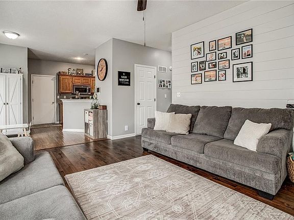 This charming two-story residence offers a welcoming front porch and a comfortable layout designed for everyday living. The main level features beautiful hardwood floors, a spacious living room with a cozy fireplace, and a dining area perfect for family meals or entertaining guests. The kitchen provides plenty of cabinet space and easy access to the deck for outdoor dining or relaxing evenings. Upstairs, you’ll find generously sized bedrooms, including a comfortable primary suite with an en-suite bath and ample closet space. The finished walkout basement adds flexible living options for a recreation area, home office, or playroom—with room for a potential non-conforming 5th bedroom—and provides direct access to the backyard. Enjoy outdoor living on the elevated deck overlooking a large, fenced yard with mature landscaping and stone features. Additional highlights include a two-car garage, walkout basement, and a great location close to Smithville Lake, schools, and parks. This well-cared-for home blends comfort, space, and convenience in a quiet neighborhood setting!