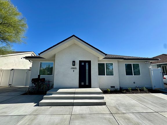 This spacious 1,800 sq. ft. home features a modern open floor plan that seamlessly combines the kitchen, dining, and living areas. Conveniently located minutes from shops, markets, restaurants, public transit, and major freeways including the 405, 101, 170, and 5. The energy-efficient home includes a Nest Smart Thermostat, Nest wired doorbell, Eufy security cameras, LED recessed lighting throughout, interior and exterior LED fixtures, and brand-new energy-saving Samsung appliances (refrigerator, dishwasher, stove, microwave with built-in hood, and washer/dryer). A Level 2 car charger is included for easy at-home electric vehicle charging. Low voltage data cables are wired throughout the home to support all your entertainment and connectivity needs. The kitchen is equipped with beautiful white shaker cabinets, quartz countertops, an undermount Kraus sink, and a Kraus faucet. Bathrooms feature stand-up curbless showers with Moen fixtures and Italian tiles. The master bedroom includes a spacious walk-in closet. There is also a large built-in laundry room with a pantry for added convenience. Enjoy the gorgeous landscaping in both the front and back yards, with ample space in the backyard for entertaining. Two tandem parking spots are available on the driveway. Section 8 is accepted. Renter responsible for utilities. Security deposit due at signing. Long-term lease offered. No smoking allowed indoors. Pets allowed with conditions. Minimal maintenance for in front and backyards.