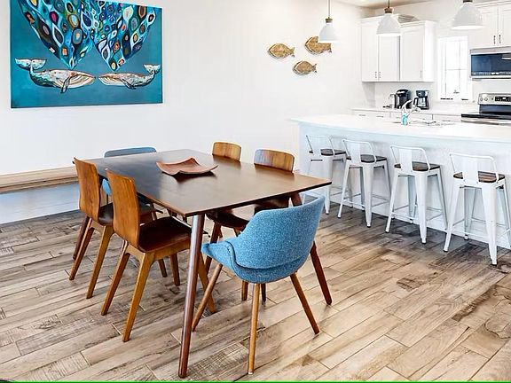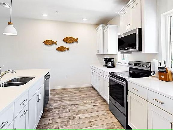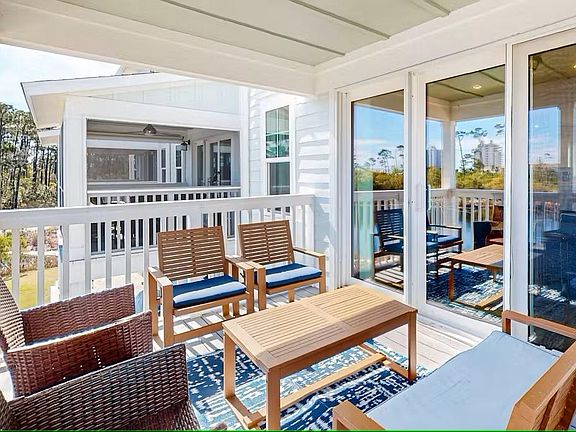 *Available from DECEMBER 2025 through May 2026. This modern townhome with a coastal decor is ideally located in the Lost Key Golf & Beach community in Perdido Key Florida. A true retreat to unwind by the clear waters of the Gulf of Mexico. This 1650 square foot home has 3 bedrooms with 2.5 bathrooms and is situated at the end of a quiet cul-de-sac. The main living area is elegantly furnished with ample seating in front of a large flat-screen smart television. The open-concept design allows for an easy flow between the living and dining area to the breakfast bar and spacious kitchen making it ideal for entertaining. The kitchen is fully-equipped and features upgraded cabinets and stainless-steel appliances. Step out to the covered back porch and enjoy the stunning views particularly of the morning and evening sky an ideal place to begin and end your day. The raised porch overlooks the ground level patio which features a gas BBQ grill. Upstairs each bedroom is styled with a coastal finish. The master bedroom has a king size bed with a flat-screen smart television and an ensuite bathroom with double vanity and a spacious walk-in shower. The 2nd guest room features a king size bed with a flat-screen smart television. The 3rd guest room features a full-on-full size bunk bed with a flat-screen smart television and a corner desk for a home office set up. The guest bathroom has a single vanity with a bathtub shower. Additionally there is a sleeper sofa in the living room with a queen size memory foam mattress along with a half-bathroom on the main floor. There is the convenience of an in-unit washer and dryer. Parking available for 3 cars; 2 regular-sized cars in the private garage and one in the driveway. The complimentary community beach shuttle which runs frequently to the private beachfront clubhouse conveniently stops right in front of this townhouse in the cul-de-sac. The Lost Key community has two outdoor pools, a new gym facility, a private beachfront clubhouse, tennis and golf.
