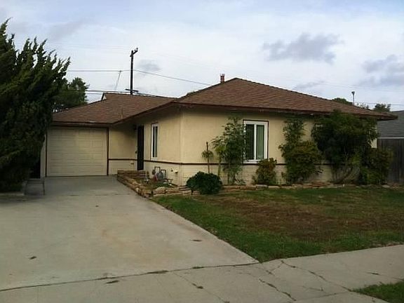 Spacious & open living and dining room areas off kitchen. Living room opens onto back yard. 1-car garage parking plus 2 driveway spaces. Blinds and drapes for window coverings; walk-in closet; new paint. Washer/dryer in garage included as a courtesy. Location central to schools, shops, and freeway access.