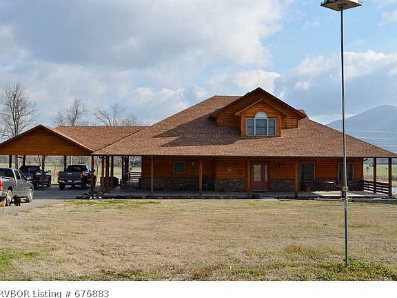Stunning mountainside view from this 3000 SF brick/log siding home w/wrap around porches, balcony & sunroom all sitting on 10 acres w/2 ponds. Home has 4 BR/2.5 BA, beautiful wood flooring, 20 inch tile, water/air purification system & 5x6 master shower.,Spacious granite gourmet kit w/island, veggie sink, wine cooler, granite table & desk, 5 burner gas range, SS refrig & a walkin pantry. Property also has a 60X80 ft workshop complete w/full effictioncy apartment, RV Bay, boat storage & covered patio.