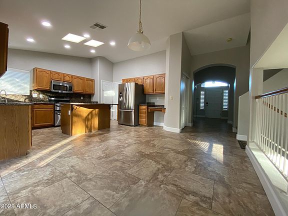Beautiful Ahwatukee rental in desirable Mountain Park Ranch, with amazing views! Enjoy all the Mountain Park Ranch swimming pools, jacuzzis, sand volleyball and tennis courts and much more! This Tri-level home boasts 5 bedrooms and a den plus Formal dining, LARGE Family room, Open Kitchen with loads of upgrades including NEW Paint, tile, granite countertops, stainless steel appliances, updated lighting, vaulted ceilings, shutters, washer/dryer and more! Fiber has been routed into the house for Cox High Speed Internet. Spacious master bedroom with extended balcony and spiral staircase, updated master bath featuring large shower and soaking tub. Low maintenance yard backing to the mountain with built in BBQ. Great location...