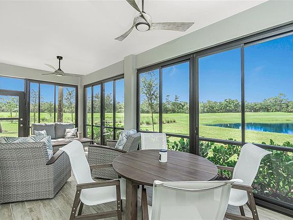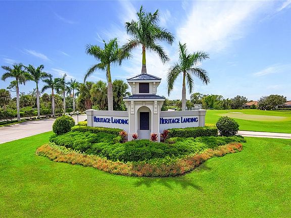 TRULY ONE OF A KIND!! Welcome to the epitome of luxury living in the heart of a prestigious golf community! This EXQUISITE Turn-key Coach Home redefines elegance with its unparalleled upgrades. The price reflects only a portion of the many upgrades and high-end furniture that are included. Situated in the most desirable location in the neighborhood and including GOLF MEMBERSHIP, this home offers a perfect blend of privacy and proximity to the Resort-Style amenities on offer. As you step inside, you'll be greeted by a professionally designed interior with high-end window treatments and furnishings throughout. The kitchen is a chef's dream, featuring an oversized island, granite countertops, walk-in pantry and a recently upgraded Kitchen Aid dishwasher. The elegant dining space has been adorned with custom shiplap trim and lovely designer lighting. The expansive living area seamlessly connects to a private lanai, that has been tiled and protected from weather with sliding glass doors surrounding the entire space. Enjoy breathtaking views of the 5th green and the 6th hole of the manicured golf course as well as a large pond. With 3 bedrooms and 2 full baths, this first floor residence offers a spacious and sophisticated living environment for all. The master bedroom is a true sanctuary, beginning with the custom shiplap wall, plantation shutters, motorized blind on the slider as well as designer window treatments and bedding for a touch of decadence. Elevate your daily routine in the master bath where the shower has been upgraded with multiple shower heads including a handheld attachment. The guest room wing can be closed off for privacy and includes a roomy guest bath and two nicely appointed bedrooms. The generous two car garage includes epoxy floor coating. Heritage Landing boasts a large resort-style pool, a charming tiki bar where you can unwind with friends and neighbors as well as the more formal clubhouse restaurant. There are both pickle ball and tennis courts available with all levels of play. A state of the art fitness center is offered as well as a Spa to pamper yourself afterwards. Located just a short drive from the Punta Gorda airport, this is truly an accessible Florida retreat to be enjoyed!