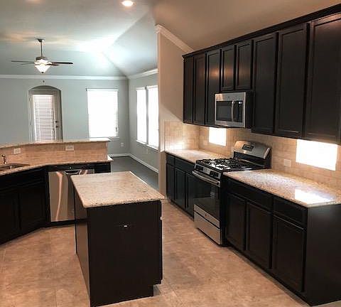 Covered patioGame roomCrown moldingGe ss appliancesFull sodFull sprinkler
