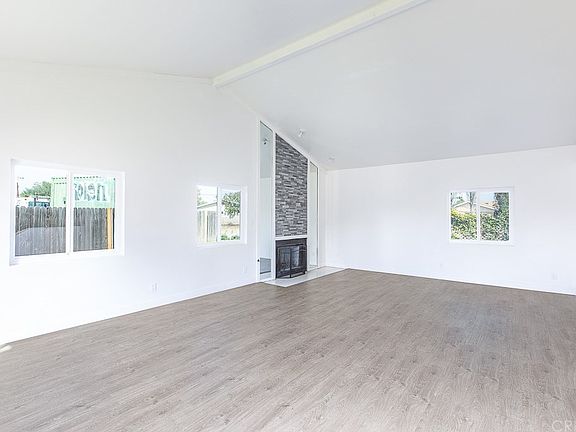 This stunning two-story home has been remodeled from top-to-bottom. The lush landscaping & covered portico enhance its curb appeal. The classic wood paneled front door opens to a tiled foyer that leads to a bright & flowing floor plan encompassing approx 2,764 sq. ft. of immaculate living space w/a fresh designer paint scheme. Step down to the formal living room drenched in natural light from a multitude of windows highlighting its new wood laminate flooring, smooth vaulted ceiling and striking floor to ceiling brick fire place. The formal dining room features a custom chandelier, wet bar and direct backyard access. The kitchen features abundant cabinets with crown molding and soft close hinges, quartz counter tops, mosaic tile backsplash, gas cooktop with hood, double ovens and a handy over-sized breakfast bar adjacent to the dining room which features recessed lighting, and direct access to the backyard. The large master suite is bathed in natural light and is graced with gleaming wood laminate floors, plus a private bathroom with double vanity, large walk in closet, huge glass enclosed shower with double showerheads and separate tub. There are three additional spacious bedrooms w/ various amenities such as gleaming wood laminate flooring, mirrored closet doors and tons of natural light. 2 additional guest bathrooms. Bring your imagination to the backyard as it is a canvas for you to create your ideal paradise and will be perfect for gatherings and barbecues!