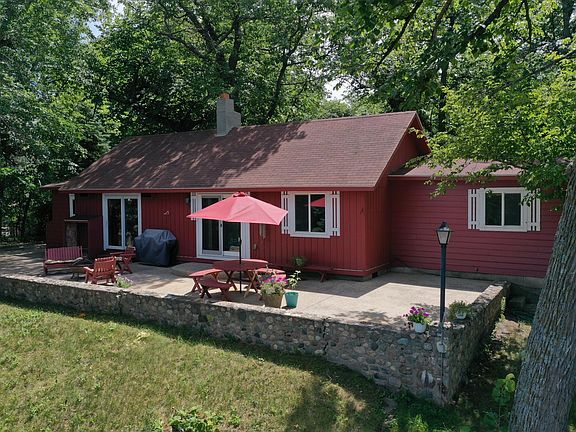 Classic Lake Cottage with stunning water views! 1024sqft Exposed aggregate concrete patio with fieldstone landscape overlooking the water. Current owners used the east side room as a 3rd bedroom with a futon. All one level. Just over an acre of rural lake place bliss. Boat house at the water. Two Stall Detached garage. From the driveway it is a level gradual slope to the water. Nest lake is known for great fishing and recreation. Kayak the channel or the Middle fork crow from New London... Public water access conveniently next door. Hop on the walking trail at the driveway gated entrance. Do not miss the virtual interactive 3D tour. Call for your private viewing today!