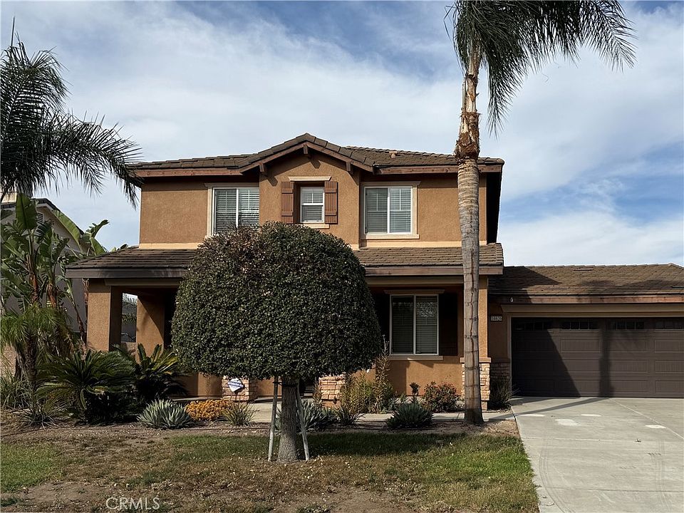 Gorgeous home in the sought-after Meadowside Community of Eastvale, ideally located across from a large, well-maintained park with picturesque Saddleback Mountain views. Enjoy walking trails, a dog park, and a splash zone just steps away. This spacious 5-bedroom residence features an open-concept layout with a modern kitchen boasting dark maple cabinets, granite countertops, and stainless-steel appliances flowing into a generous family room with surround sound. The floor plan includes one bedroom and full bath downstairs, a versatile loft, and a primary suite with a walk-in closet, dual sinks, soaking tub, and glass shower. Outdoor living is enhanced by a solid aluma-wood patio with dual ceiling fans, ample lawn space, and RV parking plus a 3.5-car garage. Energy-efficient solar system is paid in full. Conveniently located near the 15, 60, and 91 freeways, Eastvale Gateway Shopping Center, Costco, and top-rated schools. No HOA dues!