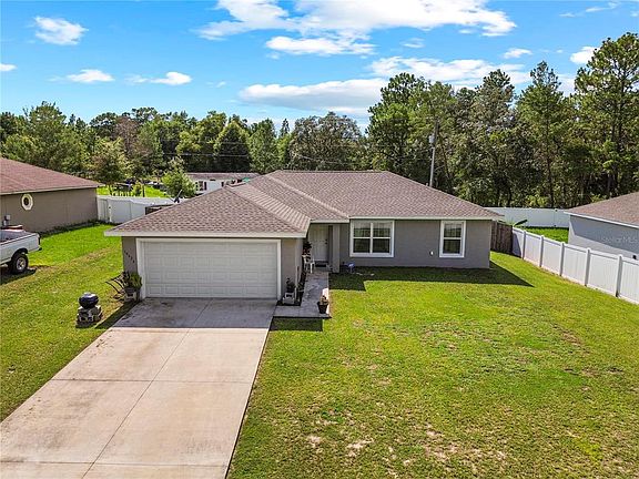 Welcome to this 2022 beautifully maintained home in the desirable Marion Oaks community! Featuring a Fenced 3 bedrooms, 2 bathrooms, and over 1,400 sq. ft. of living space, this property offers a perfect blend of comfort and functionality. The split-bedroom floor plan ensures privacy, while the open-concept living and dining areas create an inviting space for gatherings. The kitchen is well-equipped with ample cabinetry and counter space, overlooking the spacious living room. The primary suite includes a walk-in closet and private bath, while the additional bedrooms are generously sized. Outside, enjoy a large backyard with plenty of room for outdoor entertaining, gardening, or future upgrades. Conveniently located near shopping, dining, medical facilities, and major highways, this home combines peaceful living with everyday convenience. With no HOA and a growing community around, it’s an excellent choice for first-time buyers, families, or investors. Don’t miss the opportunity to make this Ocala home yours—schedule your showing today!