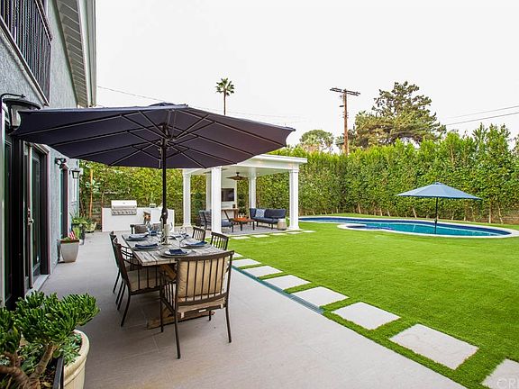 This stunning home, located in Sherman Oaks, is completely renovated, filled with light and designed with family living and entertaining in mind. The custom design offers large living spaces and a seamless transition to outdoor living. The beautifully designed back yard boasts a pool, spa and three seating areas. It provides a wonderful place to relax or entertain. The outdoor living room is covered with recessed lighting and heating, and features a TV wall and an adjoining bar and grill area. There is also a separate dining area and a secluded space to lounge on chaises by the pool. The home features a high-end kitchen and beautifully renovated bathrooms. The master suite is large and sunny with french doors overlooking the backyard. The suite has a spa-like marble bath complete with a centerpiece bathtub and steam shower, and a walk-in closet. The additional bedrooms are extra spacious and flooded with light. The house has rich oak flooring throughout. No expense was spared remodeling this home. Conveniently located to fine dining, shopping, and downtown