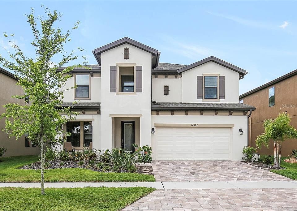 This Homes by WestBay Avocet II floorplan in Hawkstone is the POOL home you have been looking for! Luxury meets comfort in this beautiful two-story home. With its open concept design downstairs and thoughtfully secluded lower level guest bedroom and third bathroom, this home offers the perfect blend of shared spaces and private retreats. As you step into the foyer, you will be welcomed by the home office with glass French doors allowing for natural light to fill the first floor. The heart of the home is the incredible kitchen, featuring stainless-steel appliances, a large island and Quartz countertops. Whether you're entertaining guests or preparing a family meal, this kitchen is a chef's dream. The kitchen flows into the dining and living rooms, creating a harmonious space for relaxation and socializing. Enjoy your summer days on the outdoor patio and when the temperature rises, you can take a refreshing dip in the sparkling pool while enjoying the privacy of your fully fenced back yard. Upstairs, you'll find a spacious bonus room, providing endless possibilities for customization. The owner's retreat offers a private sanctuary, complete with a well-appointed en-suite bathroom. Three additional bedrooms on the second floor offer ample space for a growing family or accommodating guests. Flexibility and comfort are key features of this home. Hawkstone is a master-planned community that offers residents resort-style amenities. The community is also in close proximity to top-rated Lithia schools, nature preserves, and family-friendly attractions. Commuting is a breeze with easy access to US-301 and I-75, making it convenient to explore the surrounding area. Schedule your showing today!