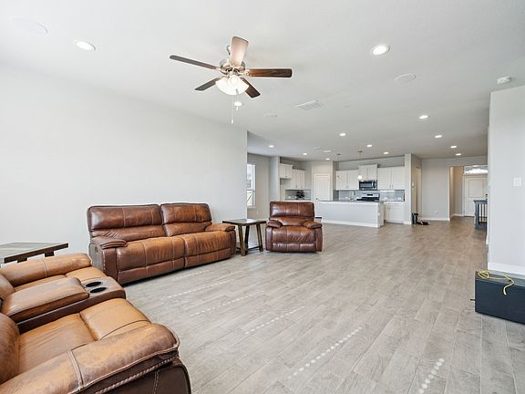 Bright, open, and beautifully designed—this single-story home offers an ideal layout for everyday living and effortless entertaining. Step into expansive open-concept living areas filled with natural light, creating a warm and inviting atmosphere from the moment you walk in. The kitchen is a true standout, perfectly appointed for any home chef with quartz countertops, a large center island, bright white cabinetry, and sleek stainless steel appliances. A bonus built-in area with cabinets and counter space serves as the perfect coffee station, bar, or buffet setup for your next gathering. With 4 spacious bedrooms and 2 full baths, there’s plenty of room to spread out. One front bedroom includes a custom-built desk—ideal for a home office or study space. Step outside to enjoy the oversized backyard complete with an extended patio perfect for outdoor dining or relaxing in the shade. A shed wired for electricity adds even more versatility, whether you need a workshop, hobby room, or extra storage. This home combines function, flexibility, and style—ready to welcome its next owners! Bundled service pricing available for buyers. Connect with the listing agent for details.
