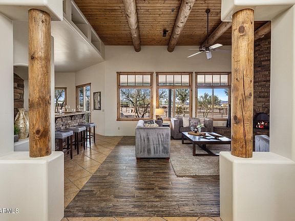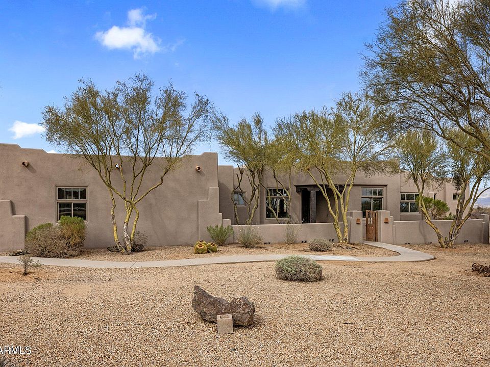 Exceptional 5-acre equestrian estate with direct access to Tonto National Forest and miles of riding trails. This 3,143 sq ft custom home showcases exposed wood beams, a spacious open kitchen with granite countertops and stainless appliances, and a striking stone fireplace. The 4 bed, 4 bath layout includes a serene primary suite and generous guest rooms. A 14-stall MD barn, 6-stall mare motel, reining arena, walker, multiple turnouts, and full RV hookups create an unmatched blend of luxury living and professional-grade equestrian amenities.