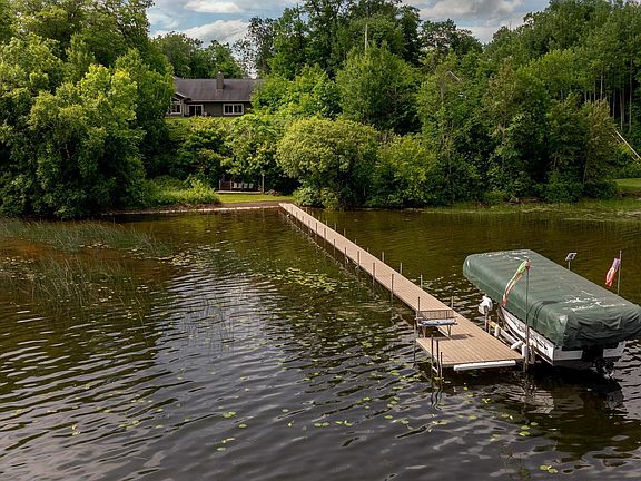 Pride of ownership shows through in this stunning property on Nokay Lake! This picture-perfect setting provides added privacy with 2.5 wooded acres and 165' of shoreline! Beautiful lake views abound in this stunning home. You will enjoy entertaining your guest in this pretty kitchen featuring knotty alder cabinets, relaxing by the warmth of the wood burning fire in the lakeside living room - this stone fireplace is gorgeous and is the heart of the home or step into the sunroom after a day on the lake to relax and enjoy your favorite beverage! Must see primary suite features a full bath, office and laundry room ~ this is a well-designed suite, upper level features another bedroom and bonus room for added space! Oversized 3-car insulated garage with plenty of room for a workshop area and there is also a storage shed. Take the boat out fishing, jump on the kayak or just enjoy the beauty that abounds at the lake ~ this property has it all! Dock is included.