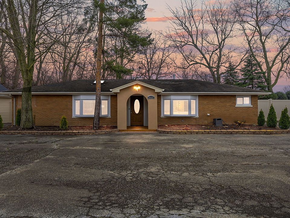 Welcome to this beautifully remodeled and well maintained ranch in a private location with spacious surrounding. This all brick 3 bedroom, 2 bathroom home comes with outstanding features like 2.5 car garage with new siding and new roof, stunningly landscaped yard with nice deck, and above ground pool, perfect for entertaining and relaxing. Brand new fence and shed for storage. Inside the comfortable living space has vaulted ceilings and skylights throughout for gorgeous natural light. New stainless steel appliances, HVAC, water heater, doors, and windows. This is a must see with amazing modern amenities.