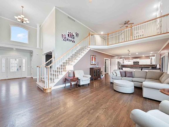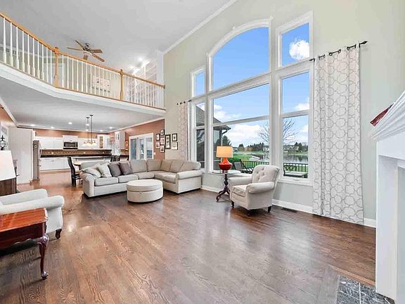 An amazing waterfront home offering a light-filled, open, and flowing floor plan, combined with tasteful and neutral decor. This 6-bedroom (all ensuite), 5 1/2-bathroom home provides the luxury and space you need. The home's open floor plan flows seamlessly from one room to the next. The dramatic two-story foyer leads into an incredible two-story great room overlooking the lake. The open kitchen boasts impressive cabinetry, stone countertops, and a full appliance suite. The floor plan takes full advantage of the commanding and inspiring water views while offering privacy on an oversized waterfront lot. The large primary suite offers generous space, creating the perfect retreat with his and hers closets. All bedrooms are generously sized, ensuite, and offer beautiful views. The home's walkout lower level features abundant windows, a large family room, a theater area, and opens to a fantastic lakeside patio. A lovely screened porch flows into an open deck. An impressive rear deck is the perfect spot for entertaining or relaxing. Abundant storage throughout the home is an added bonus.