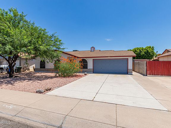 Completely remodeled from top to bottom, this charming single-family home boasts 3 bedrooms and 2 bathrooms. Featuring a brand new roof, new tile and carpet throughout, and newly painted interiors and exteriors, this residence offers a pristine living environment. Enjoy enhanced energy efficiency with new windows and new patio door. Cozy brick fireplace in the living room. The kitchen includes updated quartz countertops, a new garbage disposal and new SS appliances. inside laundry area equipped with washer and dryer, alongside a spacious two-car garage and a private, expansive backyard perfect for outdoor activities. Relax under the large covered patio amidst low-maintenance landscaping. Situated in a peaceful neighborhood with no HOA fees, this home provides easy access to downtown Phoenix and major freeways, making it an ideal choice for modern living.