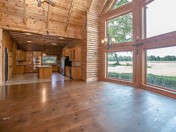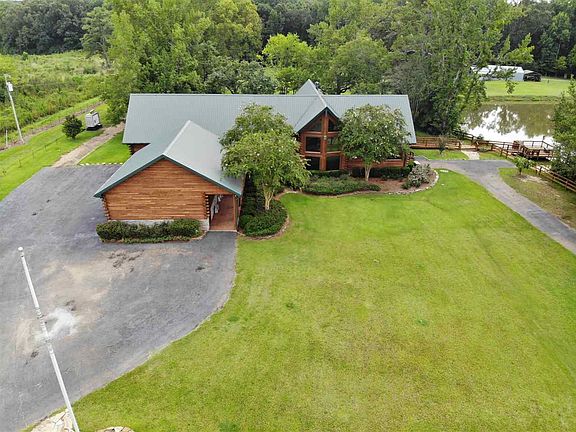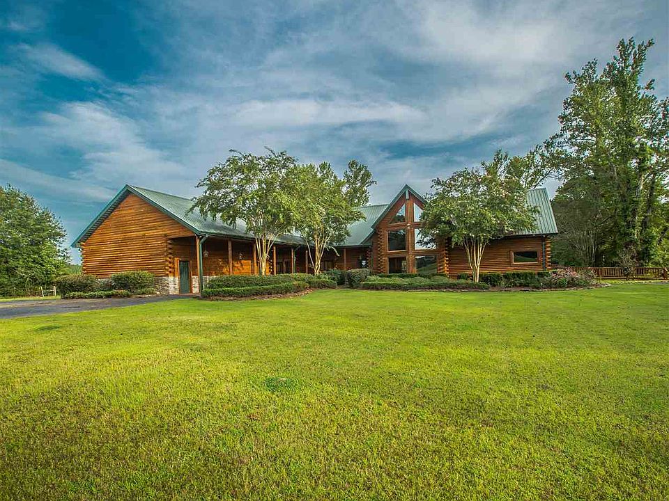 Stunning! Custom built Southland Log Home situated on the most beautiful 6.57 acres will surpass all of your dreamy expectations! Home was meticulously built with so much character and amazing appointments throughout. Upon entering you will feel as if you are literally entering into a peaceful retreat. Stepping into the great room your eyes will travel to the soaring 32ft ceiling with floor to ceiling windows, a unique stack stone dual fireplace (ease of gas logs to warm you inside and the smell of fresh cut wood to warm you outside), beautiful heart of pine floors throughout and a full bath with copper sink. Formal Dining is positioned off of the great room and has a large picturesque window overlooking the beautiful grounds and pond. Chef's Delight Kitchen features all SS appliances, smooth ceramic five burner cook-top, double ovens, sub-zero wine cooler, beautiful slab granite counters, large center island and Butler's Pantry with sink and ice-maker. Stellar twin kitchen windows are positioned nicely overlooking the pond. Directly off of the Kitchen, a large generous pantry and Laundry Room that features utility sink and room for a second fridge or freezer, and a Mechanical room. Situated on the left of the home, you'll find an office space with custom built-ins, and two Master Suites that mirror one another - Dual separate Large Master Bedrooms and Master Baths - large Master walk-in Closets, fully tiled showers and whirlpool tubs, beautiful light fixtures. Upstairs you'll find a generous guest room that features a full bath, large walk-in closet, pathway to a Big Bonus room or media room that was used as heated and cooled storage space. This space can be converted to another bedroom if desired. Outside of the bedroom you'll find a sitting room with a balcony overlooking the Great Room. Let your dreams come alive when you walk out to the large covered back porch and deck with beautiful wood cathedral ceiling. It features ceiling fans, a surround sound system, wood-burning fireplace, gas line for gas cooking grill and lots of decking all around. The backyard trees features up lighting. Fountains add a touch of water in the rear of the home! Other Grand features include a 60KW Generator, Fully Stocked Pond with brim and catfish, Metal Roof, 3 Car Garages with roll up commercial doors, Three Trane HVAC's, Irrigation, Automatic Entry Gate; Security Systems. One of a kind home with so much class, space and character! Make this one your Peaceful, Tranquil, Retreat today! Wonderful Opportunity to own such a beautiful home, house recently appraised for $535,000, construction costs exceeded over a Million! Now Offered at an unbelievable price of $449,970.
