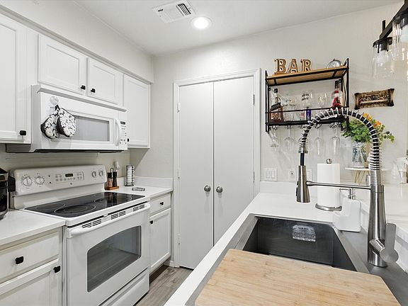 Welcome to this beautifully updated townhome, nestled in a tight-knit, gated community that offers residents exclusive access to a sparkling swimming pool, meticulously maintained grounds and assigned covered parking. Enjoy peace of mind with an HOA that covers your water bill and landscaping, ensuring a truly worry-free lifestyle.