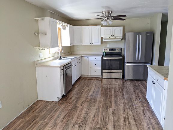 Recently updated home with newer stainless steel appliances, laundry room and AC. Has a large partially fenced yard with room for a RV and gardening.