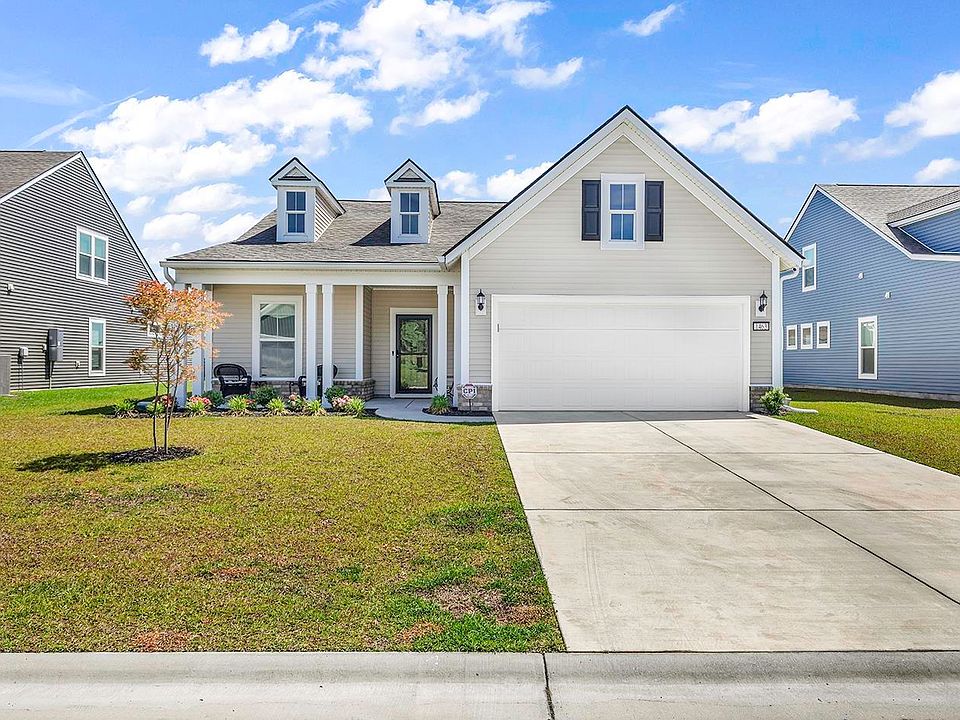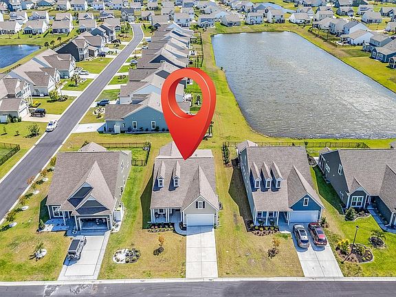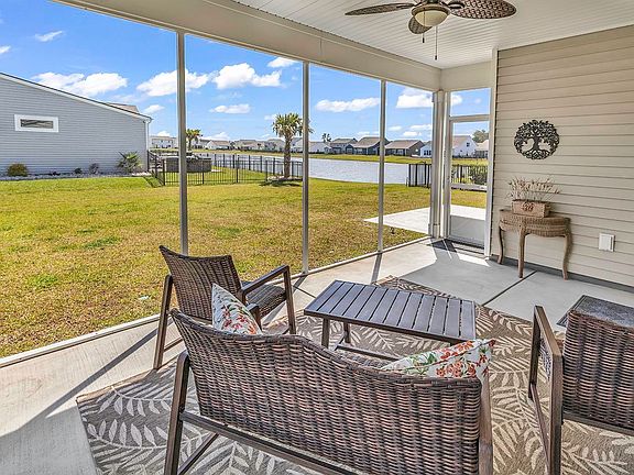 1.5 year young home with 2 year, 5 year and 10 year builder warranties still in place along with many upgrades! Turn key condition-practically brand new home without all the building stress!!! This is the Martin Ray model by Pulte Homes! Home includes gourmet kitchen with white cabinetry, tile backsplash and iced white granite counters. Whirlpool built in gas appliances! Master bedroom suite has tray ceiling. Master bath with 5ft shower with seat and upgraded tile surround. There is a Library/Study/Office (11'x11'11") with glass French Doors! Wood laminate flooring throughout the entire home. There are 2 additional generously sized bedrooms and a full bath. All bathrooms and laundry feature upgraded tiling. Recessed lighting in kitchen, gathering, halls and master bedroom suite. Enjoy watching the Carolina sunset on the screened-in (16'7"x11'7") lanai with a pond view! Furnishings are negotiable. Resort like 5-star amenities! Enjoy the use of 2 pools, lazy river, splash pad, fitness center, clubhouse situated on 32-acre lake w/ sandy beach and dock, full time activities director, outdoor hot tub, picnic & grilling areas, dog park, playground, walking trails, pickle ball, basketball, tennis courts and bocce ball! Convenient to restaurants, shopping, schools and 10 minutes to the beach!