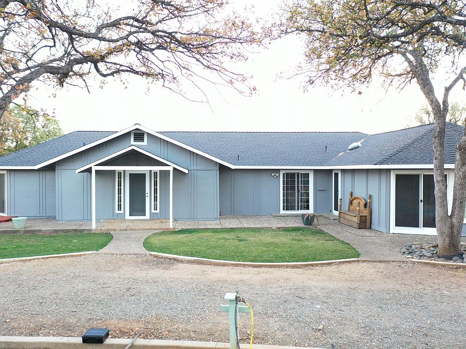 Beautiful view property with 11.67 acres of land. This spacious 3000 square foot home with a large open concept kitchen family room combination, a very large newer deck, 3 bedrooms, a very large great room with multiple uses, 2.5 bathrooms, a 3-car garage with newer garage doors, and a very large barn. 2 private driveways, with 2/3 of the pond on the property. Fantastic home with so many uses only minutes from town and schools. One-year lease. Owner, it's active CA Real Estate agent