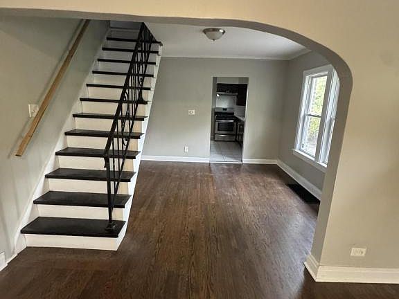 Step inside to find a welcoming living space filled with natural light, showcasing original hardwood floors and intricate moldings that reflect the craftsmanship of its era. The well-appointed kitchen offers plenty of counter space and storage, making it ideal for culinary enthusiasts. The inviting dining area opens up to a lush backyard, perfect for enjoying warm summer evenings or hosting gatherings.