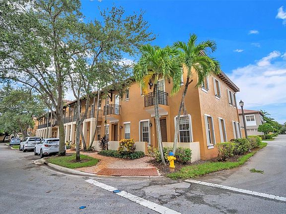 Stunning 2BR/2.5BA corner townhouse in the highly desired gated Cobblestone community! This bright and spacious home offers high ceilings, abundant natural light, and a private paved patio perfect for entertaining. Enjoy ceramic tile throughout the first floor, elegant wood floors upstairs, and a stylish staircase. The modern kitchen features granite countertops, stainless steel appliances, and a new washer/dryer. The master suite boasts a balcony with impact French doors for extra peace of mind. Community amenities include a clubhouse, heated pool, fitness center, playground, scenic walking paths, and 24-hour security. Ideally located near A-rated schools, I-75, major malls, Whole Foods, Costco, and top restaurants. A must-see!