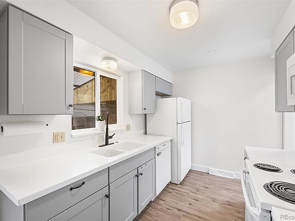 Location, Location, Location! Situated on a spacious 7,057 square foot lot within a tranquil cul-de-sac, just moments away from the Fitzsimmons Medical Campus, stands this recently updated ranch-style residence, offering turnkey convenience for immediate occupancy. Upon entry, you're welcomed by impeccably refinished oak hardwood flooring throughout, accompanied by the refreshing scent of newly applied paint. The living area serves as an ideal space for both entertaining guests and unwinding with your favorite TV show or book. The abundance of natural light flooding through the newly installed windows illuminates the room beautifully each morning. Transitioning into the updated kitchen and dining space, you'll find contemporary grey shaker cabinets harmonizing with pristine white Corian countertops and stylish hexagonal flooring. Complete with a full suite of appliances, this area is as functional as it is fashionable. Venture down the hall to discover three bedrooms, including a master suite with its own private bathroom. Noteworthy is the elegantly designed full bathroom, maximizing space efficiency. The outdoor area is equally impressive, boasting expansive acreage ideal for crafting your own outdoor sanctuary to relish in Denver's 300 plus days of sunshine annually. A covered patio, fenced yard, and mature trees add to the allure. Don't overlook the inviting covered front porch—a serene spot to savor a cup of tea while basking in Colorado's picturesque weather. Within the garage, a covered workshop awaits, fulfilling the dreams of any DIY enthusiast. Additionally, the home features a recently finished basement—a rarity in this price range—providing two full bedrooms, a full bath, living area and 1/2 kitchen! With its potential for investment, this residence presents a remarkable opportunity not to be missed. Schedule your viewing today before it's too late!