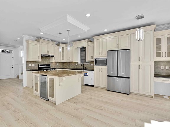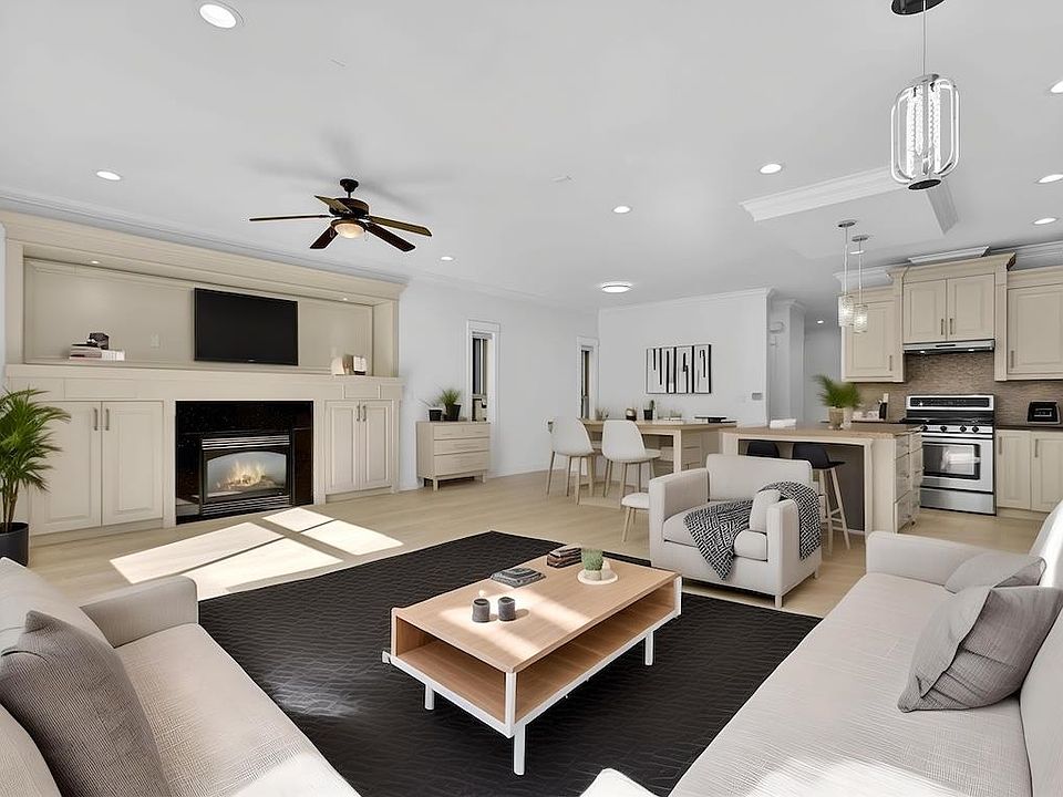 Open floor planGranite countersDark hardwood floorsKitchen and diningSouth-facing yard