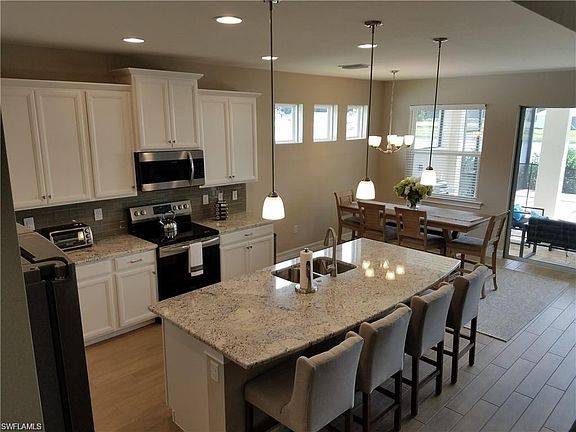 Naples Reserve is a new gated community in South Naples. Its grand entrance welcomes you in to the community with so much to offer! Fun-filled, casual Florida home style community with water-front living describes Naples Reserve. Centered around a picturesque private lake, this community boasts endless amenities including the new Island Club with its tiki bar cafe and resort-style pools. 22 lakes and nature preserves make this community breathtaking from any viewpoint. Naples Reserve is the perfect fit for anyone. It all comes together in this exciting new development ideally located in South Naples, Florida. This brand new pool home is exquisite! Spacious floor plan with all of the latest upgrades. From modern light fixtures to wood flooring and all new furniture, you will absolutely love it here. Offers two guest rooms both providing Queen size beds. Third guest room has two bunk beds. Guests each have two full bathrooms for use as well. Pool table creates fun as well as serene heated pool on lanai overlooking the lake. King bed in nice size master bedroom with big flat screen TV mounted on wall. Cable and internet both included. Dining table seating 6 people. Don't miss out!