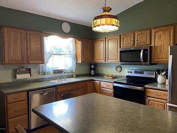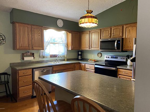 Ready to move in with everything you need this 4 BR, 2 full bath home and 2-car attached garage sits on over a half acre, park-like wooded lot in a cul-de-sac.Owners are meticulous in the care of their home, continually updating. The roof was torn off and completely redone in 2007, new well in 2014, kitchen had a complete remodel in 2008 adding Kraftmaid cabinetry with soft close drawers, new stainless-steel microwave, refrigerator and stove were installed 7/2020 and are included in the sale along with the washer, dryer and water softener., Replacement garage and interior doors.Lower level w/large living space, 1 of the bedrooms, 1 of the baths and wood-burning stove.. Perfect for entertaining, two decks and a concrete patio overlook the inground pool. Measurements are approximate.