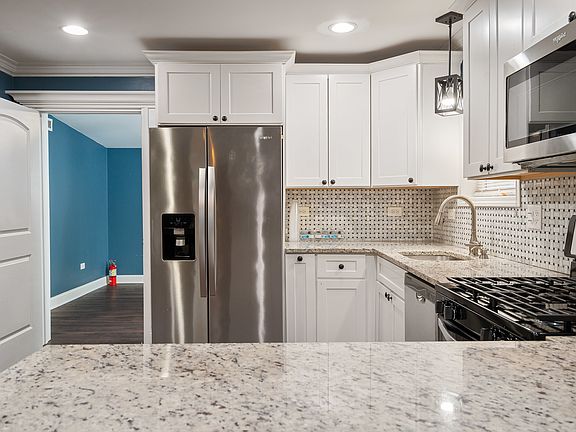 Welcome to this amazing, fully renovated residence that exudes modern elegance and comfort! This house underwent a complete gut rehab in 2018, including a new addition in the back and a newly built garage from the ground up. The scent of fresh lumber wood still lingers, a testament to the meticulous craftsmanship that went into its transformation. Step inside to discover a newly redesigned layout, catering to today's lifestyle with a combined living room and open kitchen-an ideal setting for entertaining guests and hosting family gatherings. The kitchen boasts beautiful tall white cabinetry, granite countertops, a large peninsula for extra seating, and top-of-the-line stainless steel appliances. Experience seamless indoor-outdoor living with the dining room featuring sliding doors that lead to the backyard. A new bathroom showcases impressive tile work, adding a touch of luxury to your daily routine. Every inch of this home was thoughtfully updated in 2018, including siding, roofing, complete electrical (including new service), plumbing, HVAC ductwork, furnace, AC units and light fixtures. Enjoy a new concrete patio and sidewalk, as well as enhanced insulation for year-round comfort. Located on a friendly and quiet block, this home is conveniently close to all amenities. FHA, VA, and conventional loans are welcomed, reflecting the universal appeal of this meticulously maintained and clean property. This residence is more than just a house; it's a testament to quality craftsmanship and thoughtful design. Don't miss the opportunity to call this turnkey gem your home. Schedule a showing today and experience the perfect blend of style, functionality, and tranquility in a welcoming neighborhood!